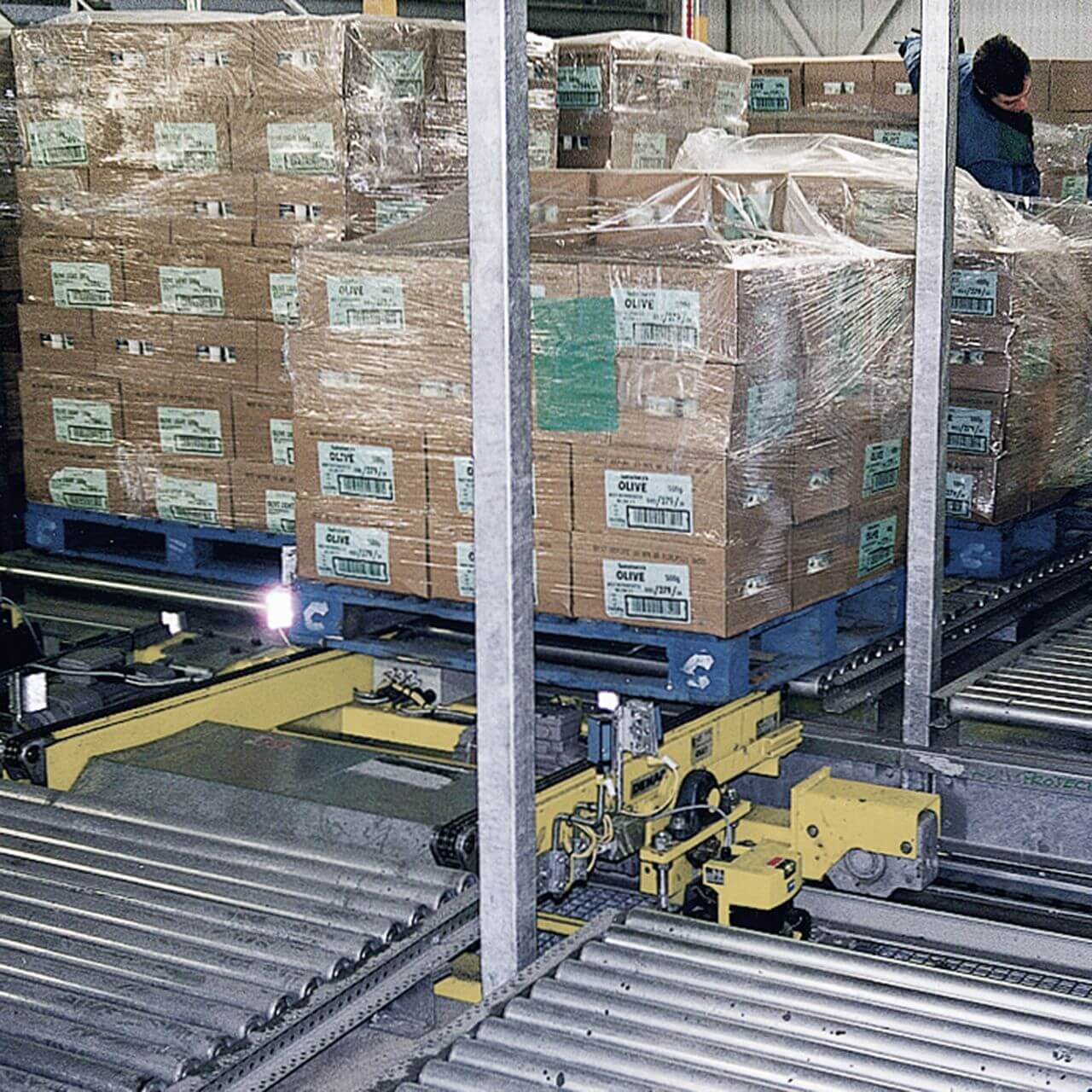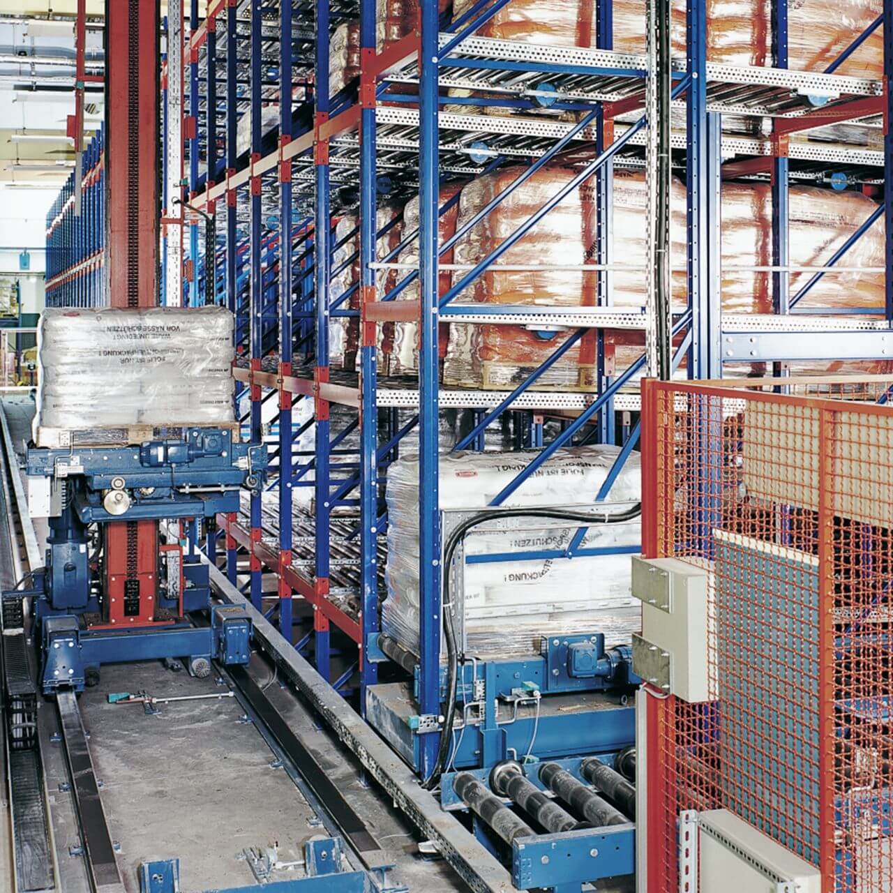 Vzhledem k vynikajícím manipulačním a vychystávacím vlastnostem a stálé dostupnosti zboží jsou automatizované paletové regály dobrou volbou v případech, kdy je třeba skladovat velké množství výrobků. Buď proto, že výrobky musí být dočasně skladovány mezi dvěma kroky procesu, nebo držení rezervy, pokud lze očekávat velké výkyvy ve spotřebě. Cílem je zabránit nedostatku zásob a zajistit, aby bylo zboží trvale dostupné, např. pro výrobu. Plně automatizované paletové regály umožňují rychlé a bezchybné zásobování produkty kdykoliv, například při prodejních nebo výrobních špičkách. Technologie IMS nebo WMS zaručuje, že zboží je vždy dostupné, protože inventura a doobjednávání jsou prováděny průběžně. Zboží je skladováno velmi efektivně a ve vysoké hustotě, obvykle nahodile. Počet paletových pozic se výrazně zvyšuje ve srovnání s manuálními systémy. Zákazníci mají prospěch z maximální transparentnosti produktů a procesů.
