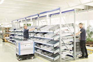 Las estanterías dinámicas para cajas de BITO permiten su uso tanto para estanterías de aprovisionamiento en procesos de fabricación como para la preparación de pedidos y el propio almacenamiento de los bienes. Los beneficios son