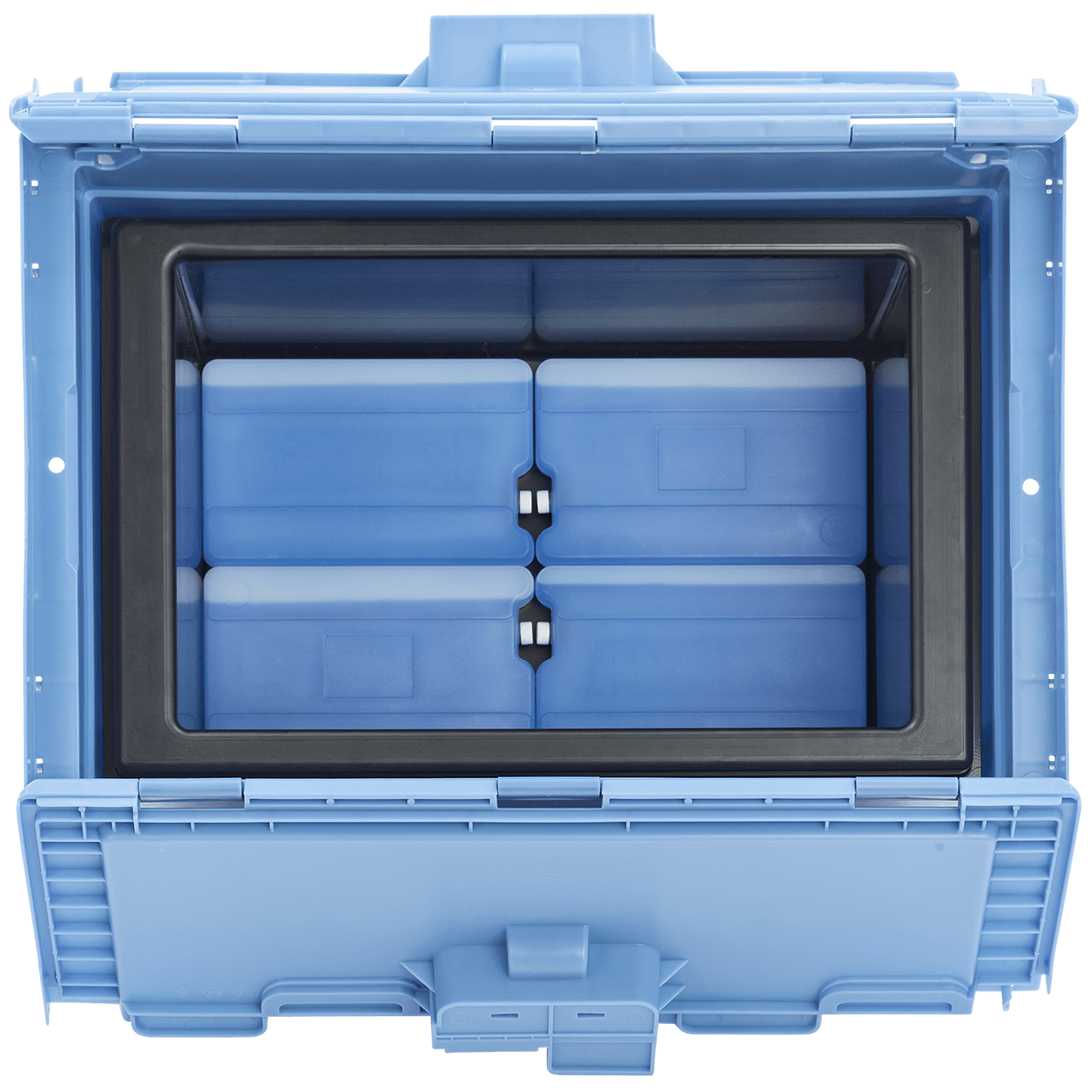 Este contenedor se refrigera de forma pasiva y se suministra con una capa aislante y acumuladores de frío.