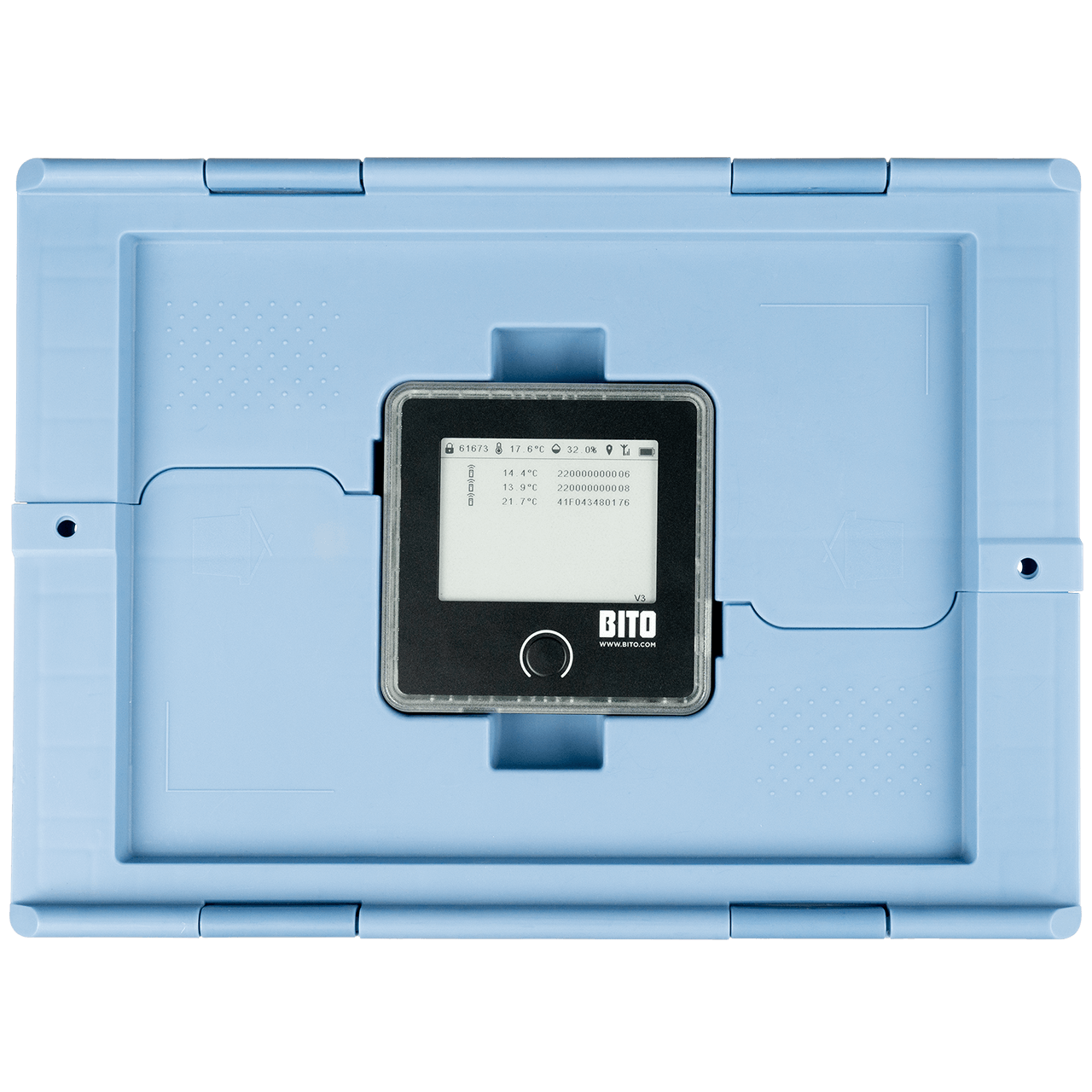 Cuando están vacías, las cajas MB de BITO se encajan entre sí, lo que reduce el espacio necesario hasta en un 75 %. Están disponibles con rieles de apilado o con una tapa abatible de dos piezas. Las cajas MB están diseñadas para una carga de apilado de hasta 200 kg.