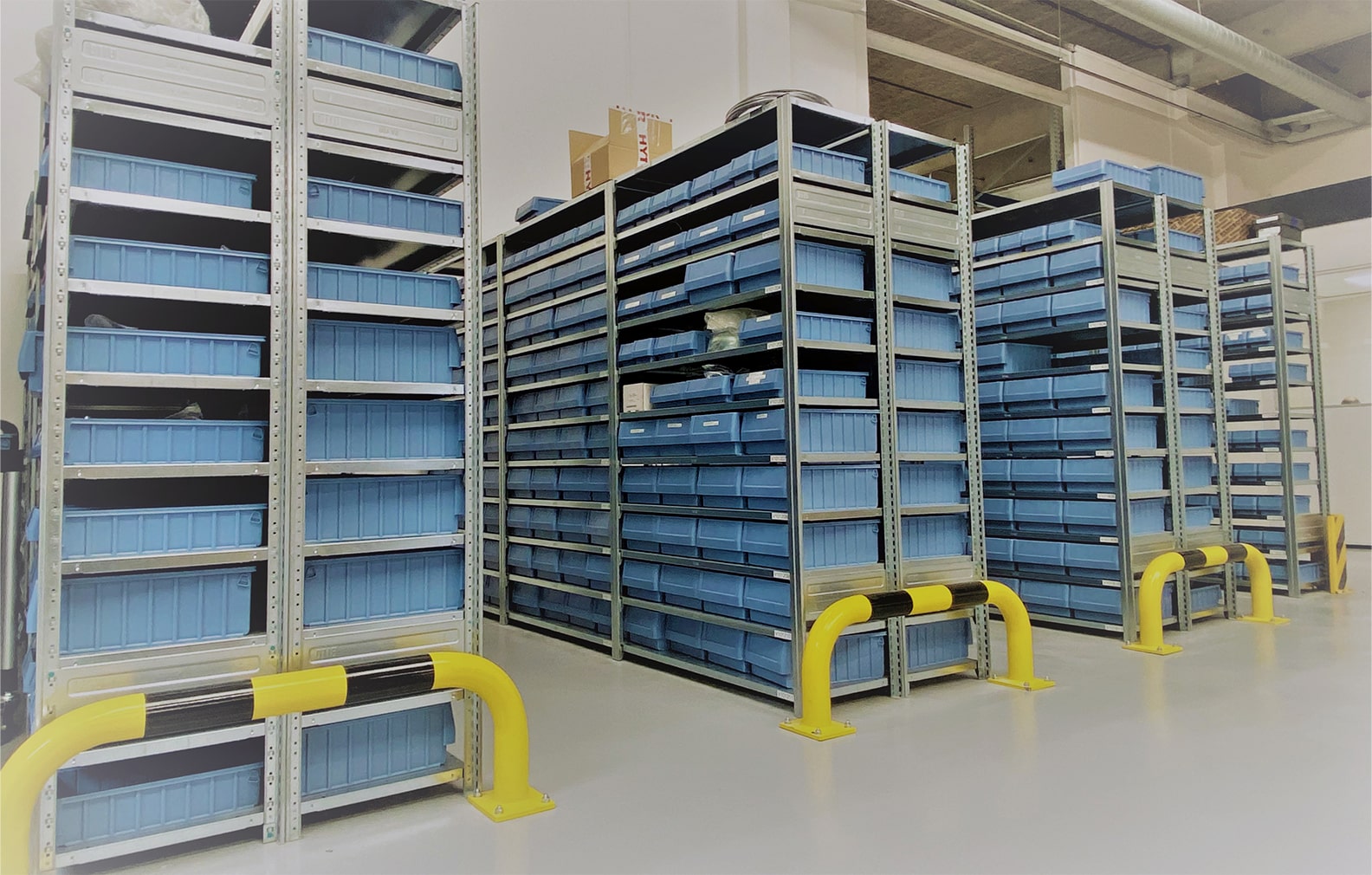 » BITO:n pientavarahyllyillä ja RK-muovilaatikoilla luotiin joustava ja helppo pienten osien käsittely ja säilytys.