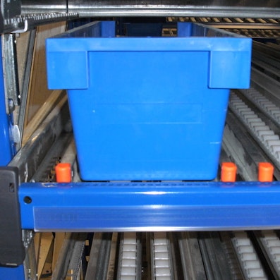 - Grâce à une utilisation maline des possibilités de base, la densité de stockage a fortement augmentée. Aussi bien des roues cylindriques que des roues à boudin sont utilisées. Dirk Claessens de Febelco nous explique : « Après vérification, la plupart des médicaments sont placés dans des bacs en plastique après leur arrivée. L’autre partie reste dans les boîtes en carton. Après un test approprié de BITO, il est apparu que les roues à boudin s’avèrent idéales pour ces boîtes. Grâce aux roues à boudin, nous avons pu réaliser plus de couloirs par niveau dynamique ».
