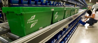- À l’aide des rayonnages à tablettes et des rayonnages dynamiques pour colis. L’entrepôt de Febelco compte plus d’un kilomètre de rayonnages dynamiques, en rangées de 46 mètres.