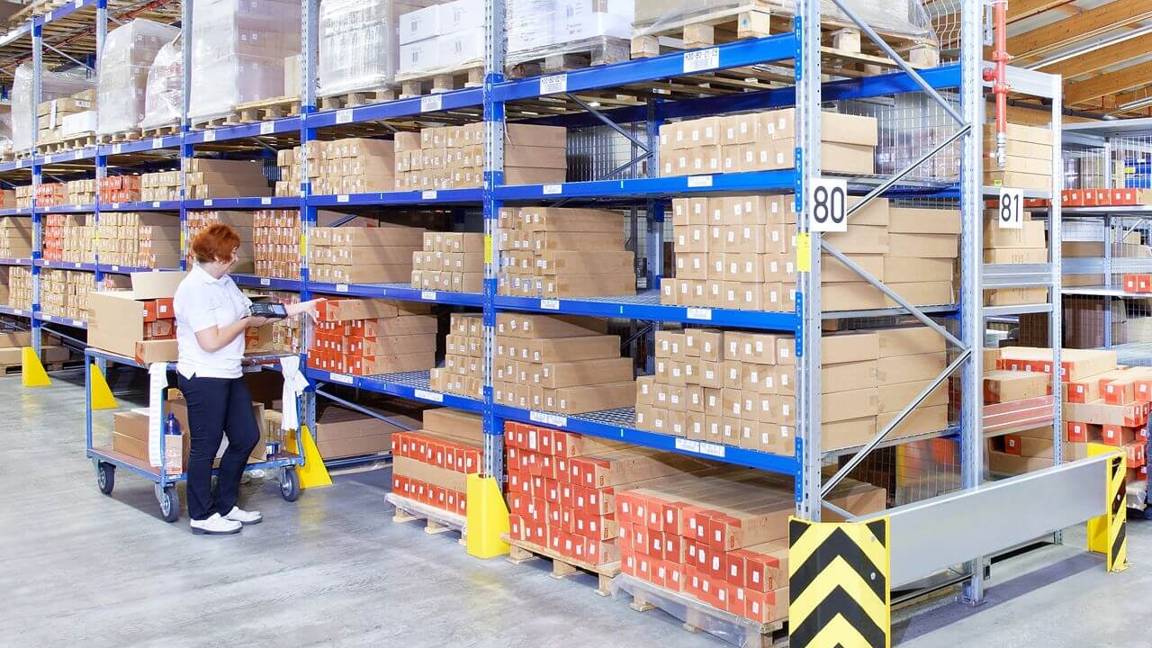 » L'entrepôt central est une combinaison idéale de rayonnages à palettes PRO à allées étroites et de rayonnages à tablettes BITO.