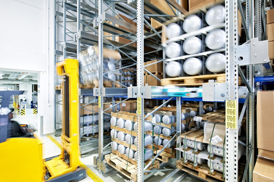 A dolgozó az áruátvételi részlegen egy teljes raklapot a targoncára rak, majd a raklapot a csatornában lévő szállítókocsira helyezi. Megszólal egy hallható figyelmeztető jelzés. A jármű egy méter/másodperc sebességgel begurul a csatornába, és lehelyezi a raklapot – miközben a kezelő már a következő áruért megy. „A termékek számától függően két–három csatornát töltünk fel ugyanolyan fajtájú árucikkel” – fejti ki Strobel logisztikai vezető. A villástargonca szükség esetén az egyik csatornából a másikba helyezi át a szállítókocsit.