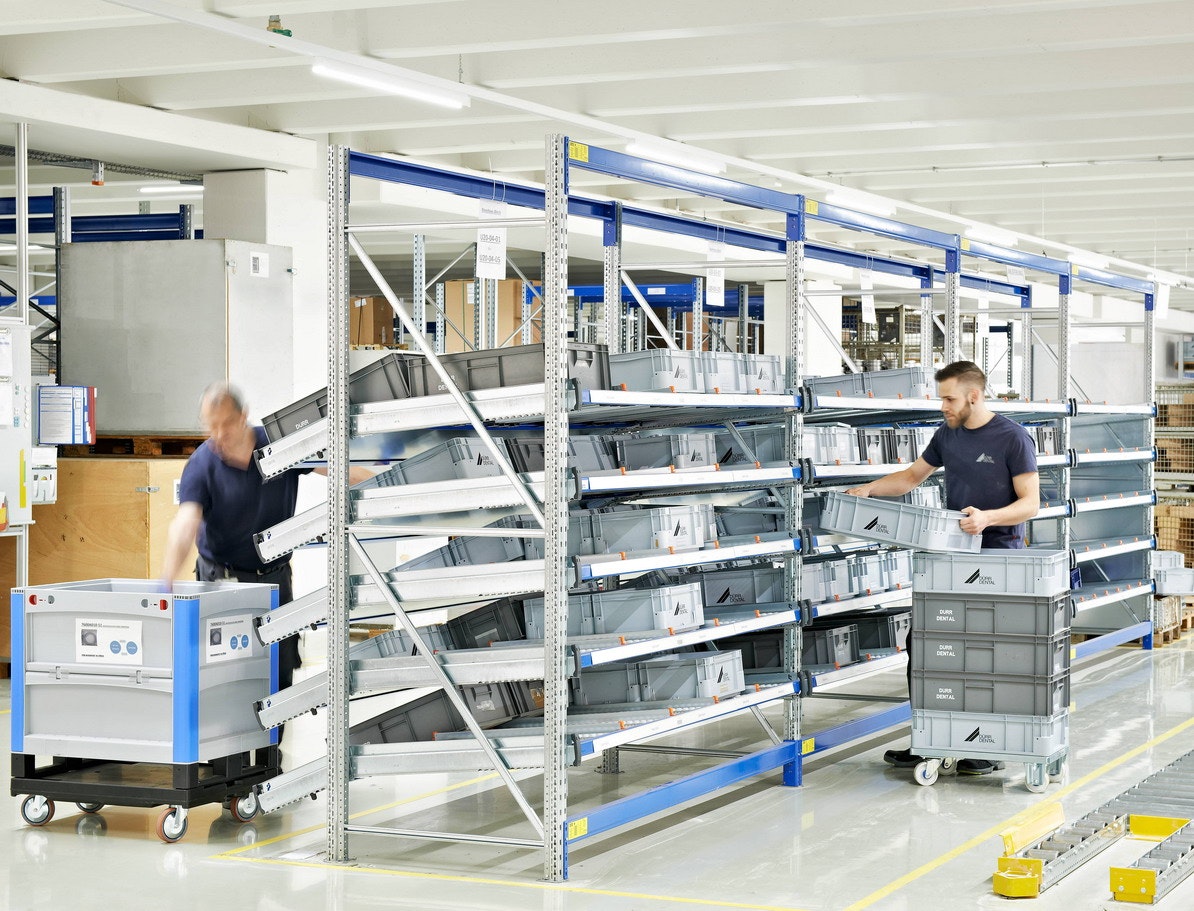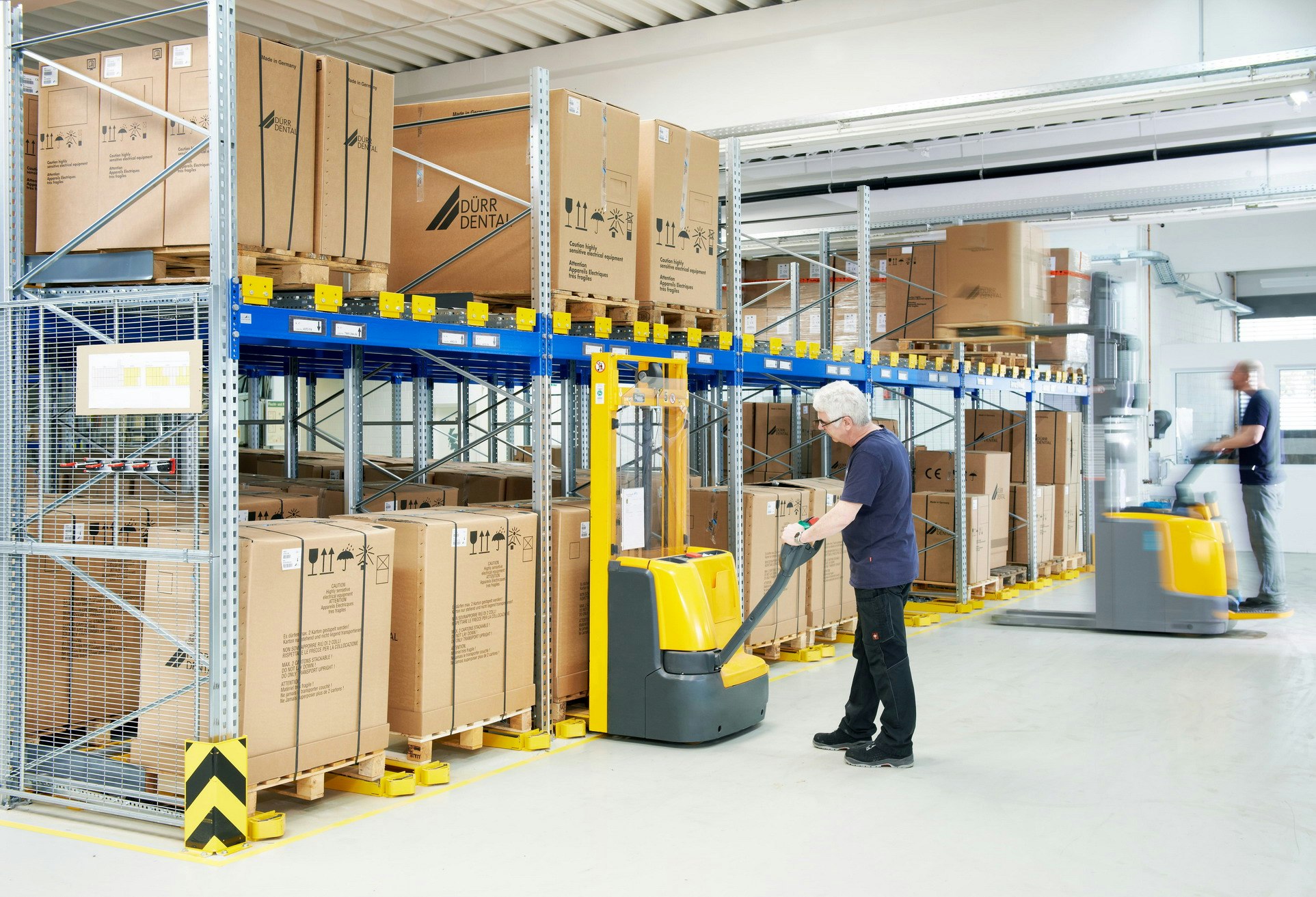 A Dürr Dental AG vezető vállalat a fogtechnikai termékek fejlesztése és gyártása területén. Amikor 2013 tavaszán, egy tűzeset után az új logisztikai központ megépítésébe fogott, a BITO kínálta állványmegoldásokra támaszkodott. Ezenkívül a raktártechnika területén teljes körű megoldásokat kínáló vállalat szállította az akkumulátorról működő, távvezérelt csatornajárművet, a PROmotion szállítókocsit is. Ennek segítségével nem csupán a LIFO-elv (Last in, First out = utoljára be, először ki) valósítható meg problémák nélkül. A PROmotion a nagyon könnyű és terjedelmes árukat is biztonságosan és hatékonyan szállítja. Ennek a raktározási megoldásnak köszönhetően a meglévő hely optimálisan kihasználható, és a szerelési részleg hatékonyan ellátható anyaggal.