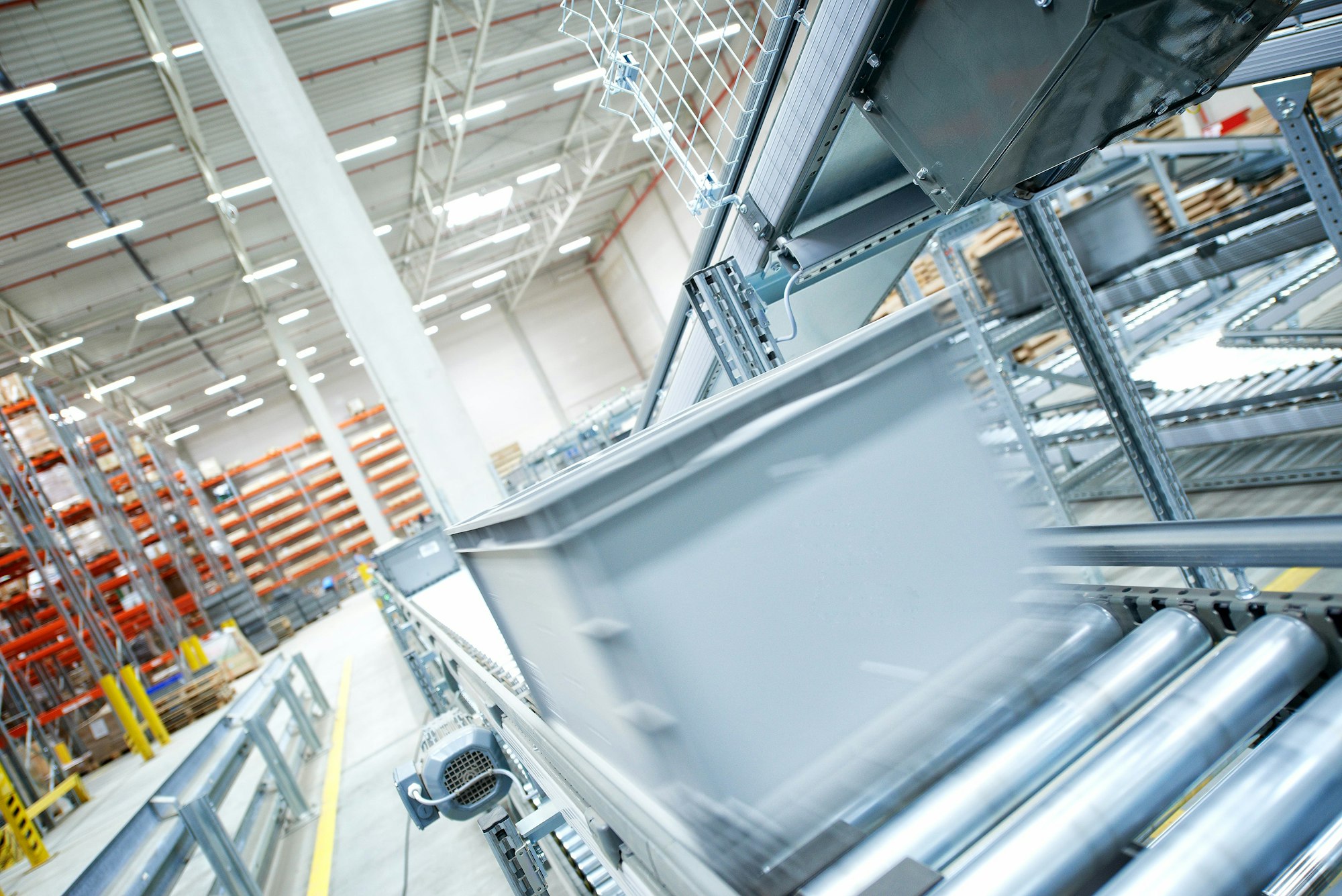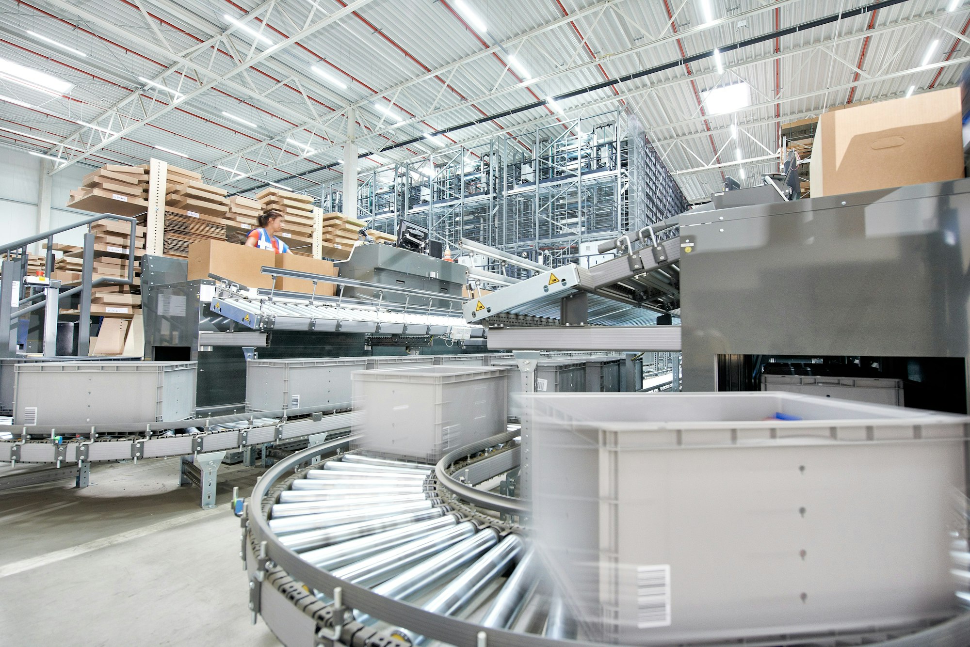 „Az automatizált kisalkatrész-raktár szállítókocsis-kétliftes elven működik” – magyarázza el Lutz Harde a csarnok bejárása során. „Öt folyosónk van itt, egyenként 20–20 szinttel. Minden szintet külön szállítókocsi szolgál ki.” A függőleges mozgáshoz minden szállítókocsihoz két lift tartozik. A szállítókocsik a folyosón belül, mindkét oldalon háromszoros mélységben, rendszertelenül tárolják be a tárolóládákat. A létesítmény jelenleg mintegy 67 000 tárolóládának kínál helyet.
