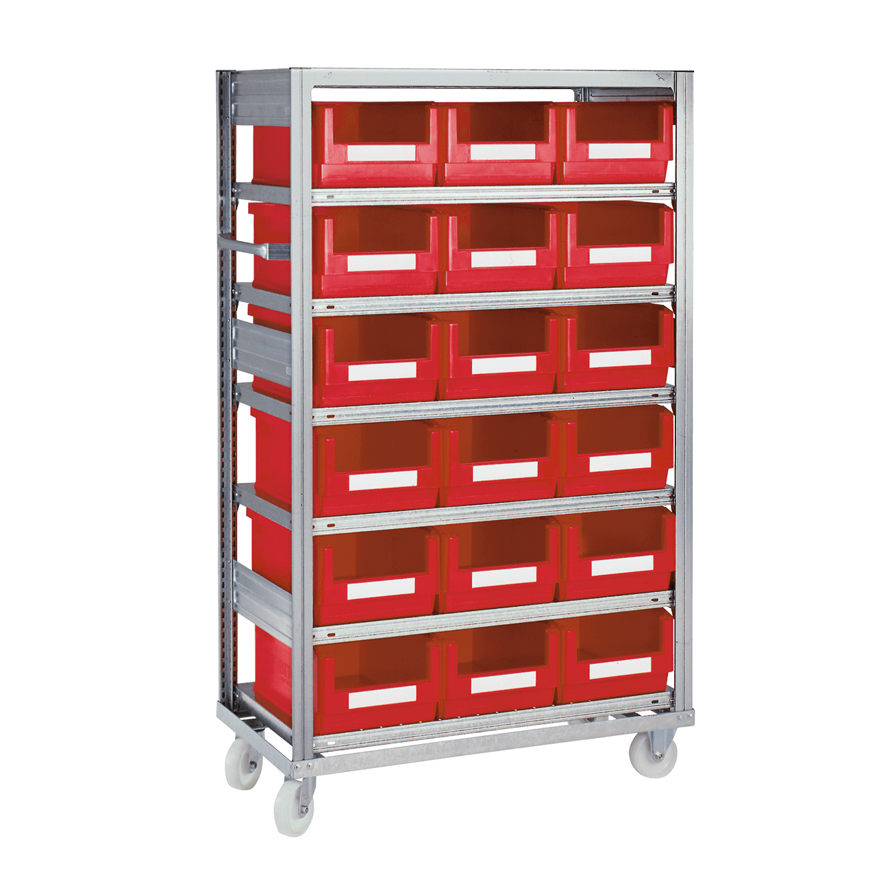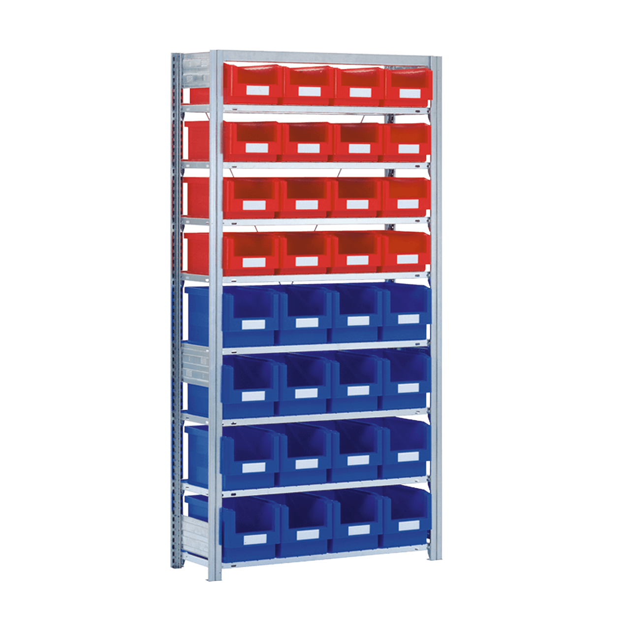Allt från en leverantör: Hyllställ med lådor för smådelsförvaring