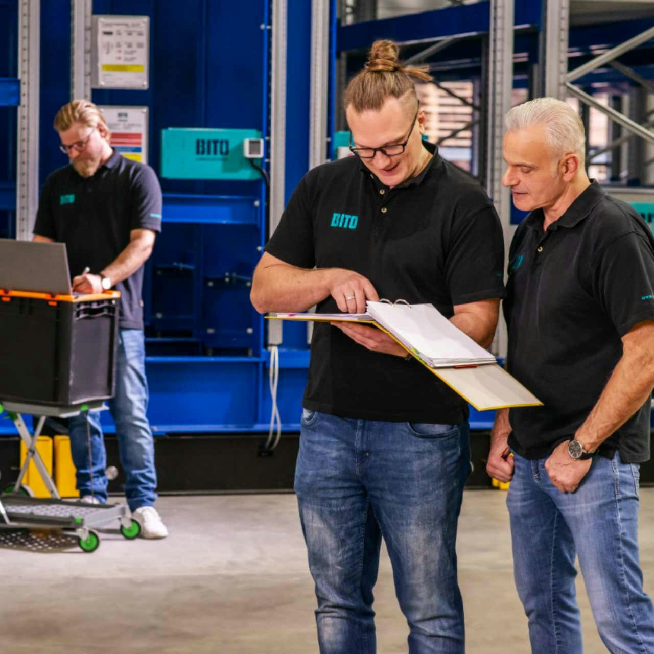 Підприємства, які експлуатують складське обладнання, за вимогами стандарту DIN EN 15635 повинні мінімум раз на дванадцять місяців викликати професійну службу для перевірки своїх стелажних систем. Компанія BITO найкращим чином підготовлена до цього завдання: декілька висококваліфікованих інспекторів стелажів, які в будь-який час можуть провести огляд та випробування для Вас та вжити відповідних необхідних заходів, допоможуть Вам забезпечувати постійно високий рівень безпеки в роботі. Разом з Вами ми потурбуємося про визначення термінів подальших інспекцій. – Задля забезпечення постійної безпеки Ваших співробітників та довгого строку експлуатації Вашого устаткування.