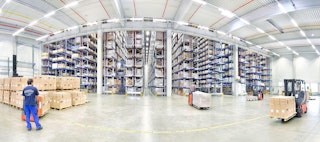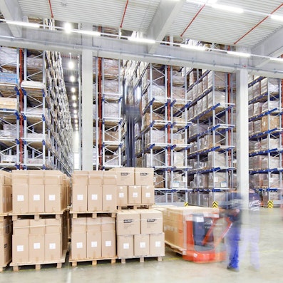 Інший палетний стелаж на 2800 місць і система поличкових стелажів використовуються в сусідній будівлі як склад для комплектування